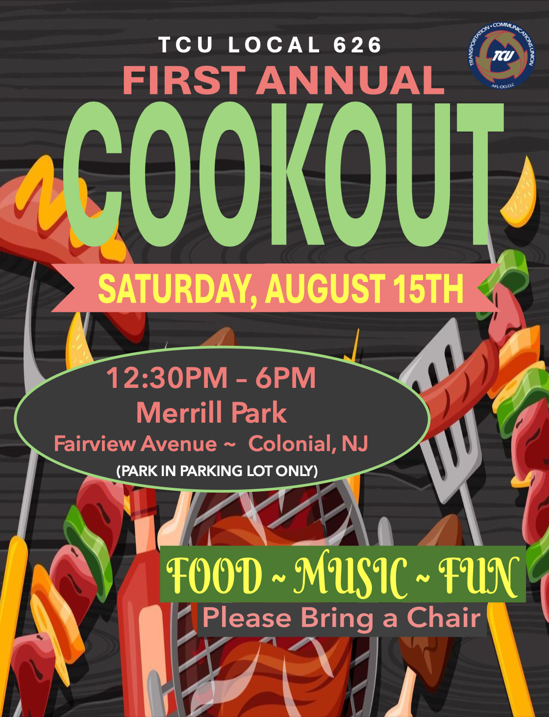 You are cordially invited to join us for our First Annual Local Cookout on Saturday, August 15th from 12:30pm to 6:00pm at Merrill Park located on Fairview Avenue in Colonial, NJ.